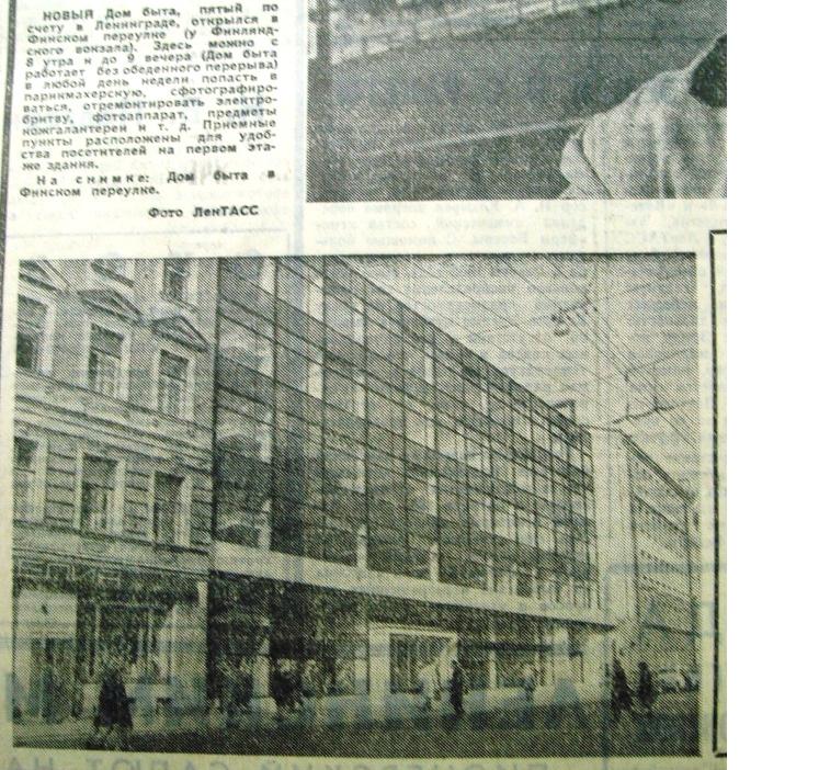 Заметка "Ленправды" от 20 мая 1969 г. об открытии "Дома быта" (так и остался до сегодняшнего дня, как "Дом бытовых услуг").