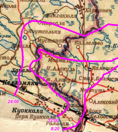 В итоге к концу дня войска 21А вышли на рубеж Келломяки - Йоутселька - Каллелово - Охта.