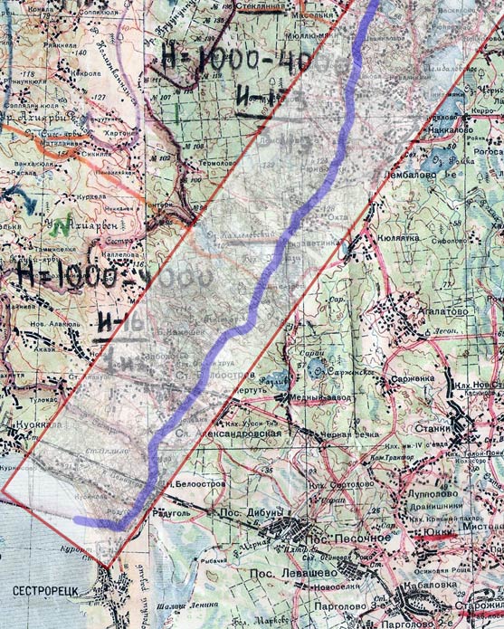 Синия линия - это линия фронта 1941-44. Как можно убедиться - финские войска перешли старую границу и на Карельском перешейке, а не только в Карелии.