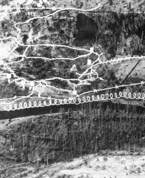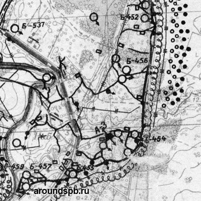 Знаменитый белоостровский дот-"миллионер" получил номер А-3, на фотокопии можно видеть насколько подробными были схемы финской линии обороны.