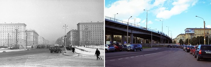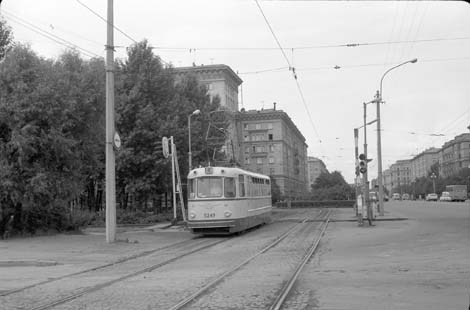 А это - 1970-й. Остановка "станция метро Автово" на Автовской улице, ж/дорога слева, впереди поворот направо на Кронштадтскую: