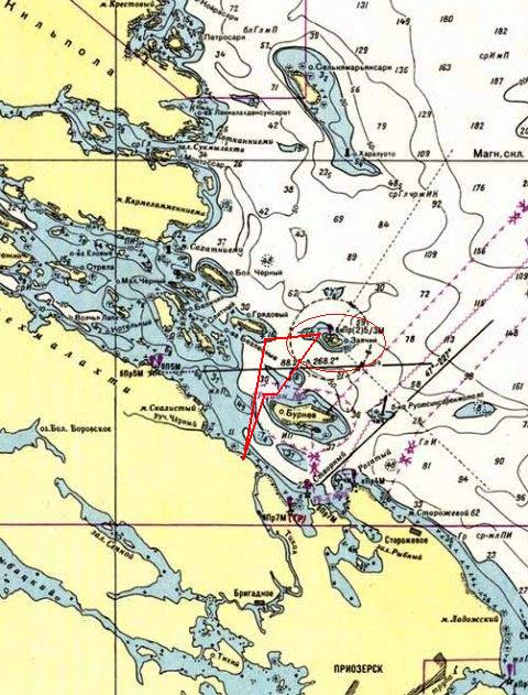 Стартовали из базы отдыха «Треугольник» (бывшая база отдыха завода «Красный треугольник»). Находится на берегу Ладожского озера, за Приозерском. Представляет собой несколько десятков деревянных домиков расположенных вокруг исскуственной защищенной железобетонным молом бухты (бухта результат деятельности персонала базы в 60-х годах 20 века и не имеет отношения к «Финскому наследию»).