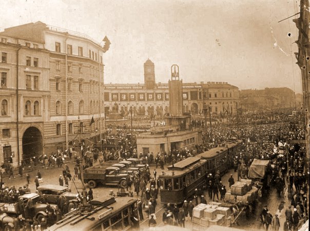 Датировка, как я понимаю, связана с наличием памятника Александру III? Демонстрация,вероятно,майская(сужу по одежде).