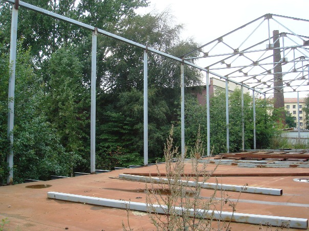 Вот ещё для ориентира. Труба ещё была в августе 2002 г.(возможно в фильме в кадр попала соседняя труба,т.к. у котельной находилось две трубы {в 15 метрах друг от друга}). Надстройка котельной сохранилась до сих пор.
