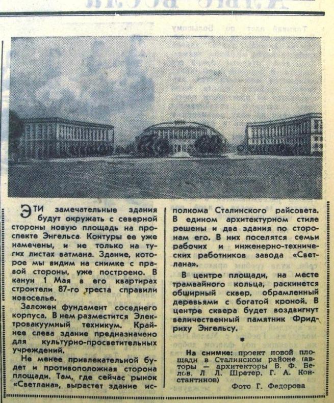 Вот какой хотели видеть три архитектора площадь. Заметка из "Вечернего Ленинграда" от 20.07.1957