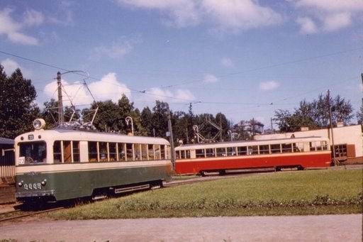 Только вопрос: не крашеные ли они? Разве в 1959 г. были трамвайные вагоны ЛМ49 не стандартной жето-красной, а желто-зеленой раскраски.