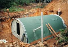 The quartering portion of the reinforced-concrete arch bunker requires an excavation of 40 to 50 cubic metres. When completed, the bunker provides protection against artillery shell burs