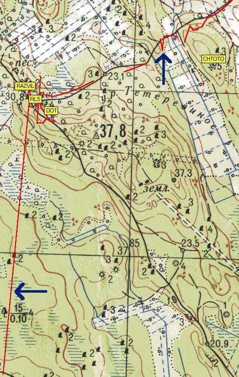 Завел тут себе игрушку - Geko-201 . В субботу опробовал. Пока держу в руке - все нормально, как только сую в нагрудный карман - сразу теряется. Об этом, впрочем, открыто предупреждают. Вопрос в другом - на треке дикие выбросы, отмеченные синими стрелками. По нижней линии я не ходил однозначно.