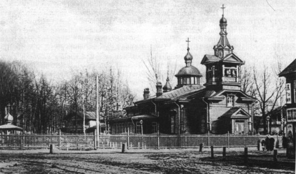 Церковь стояла на южном берегу пруда прямо в створе Институтского: