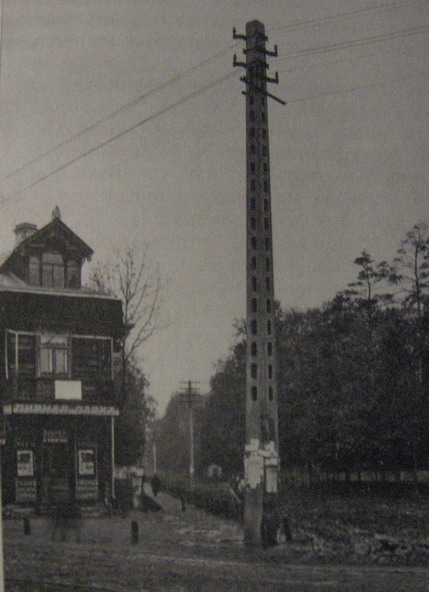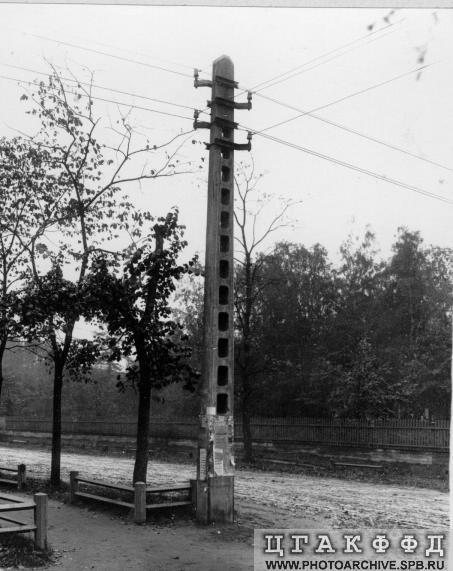 На двух снимках г-на Бегемота есть железобетонные столбы, два из таких стоят, кажется, до сих пор, на Песочной и Институтском.Столбы не фонарные, как их посчитал С.Глезеров. Давайте уточним, по каким улицам они стояли. Кроме упомянутых выше улиц, точно на 2-ом Муринском, и у поворота на Дорогу в Сосновку.