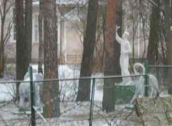 | Помнится, году в 87-м или 88-м мы проводили акцию по одеванию противогаза на кого-то из скульптурной группы. Так что не в 90-х эт точно.