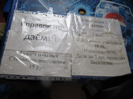 Объявление внутри, в чисто отечественном стиле - "Справок не даем",