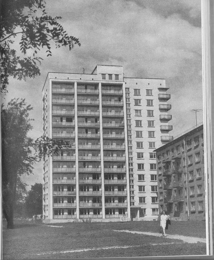 Жили ли в этом доме только архитекторы мне неизвестно, а вот то, что это дом ЖСК "Архитектор" (Проектировщик "ЛЕННИИпроект", тогда еще Ленпроект", 1966 г., арх. В. Ф. Белов, В. Курочкин) это точно. Это первый дом построенный по этому проекту. В дальнейшем при строительстве домов этого проекта, помещение на 13-ом этаже маскировалось дополнительным рядом лоджий. В Ленинграде построено около 70-ти подобных домов. Все они различаются вариантами отделки интерьеров и остекления.
