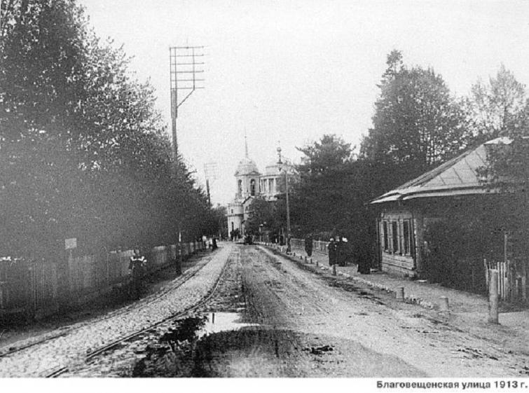 Спасибо за интересный вид! Колокольня еще цела. Линия конки - одна из последних коночных линий. Закрыта в 1917 году. Нигде не встречал ее изображение. А еще столбы - электричество, или телефон.