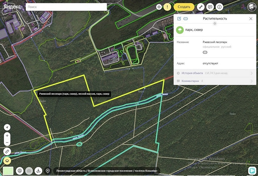 Через несколько дней новые границы Ржевского лесопарка должны отобразиться на схематичной карте Яндекса.