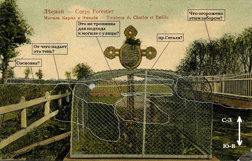 И еще некоторое соображение относительно креста. Надпись, удобнее всего было расположить со стороны дороги из Гражданки. Есть ли у кого карты этого места после 1855 и до постройки Политеха.