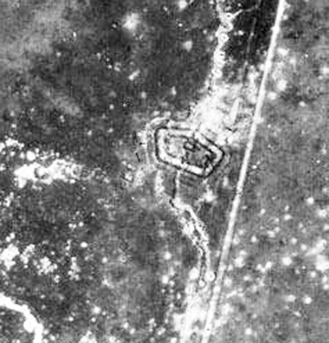 Судя по аббревиатуре, снимок должен быть от 18 февраля 1943 г. Но, во-первых, какой это февраль, если снега нет, а деревья с листвой стоят? Во вторых, на часах в левом нижнем углу четко написано: "1.10", т.е. 1 октября. А вот с годом не совсем понятно. На других снимках на этих же часах после даты следует год, а здесь написано что-то типа: "3(F)22". Непонятно. Но это не страшно, год и так можно определить.