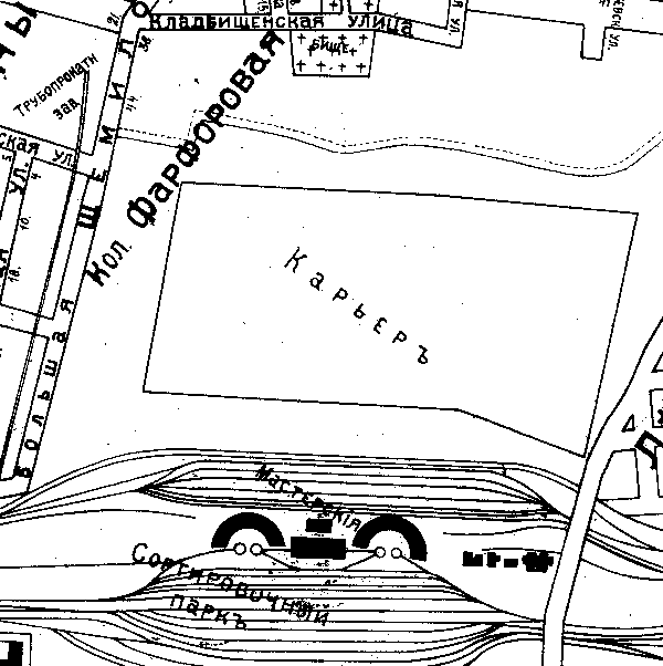 Судя по старым картам, раньше карьер был больше, чем сейчас - на его южную часть накладывается современная Ивановская улица, см. карту 1932 или 1939 года.