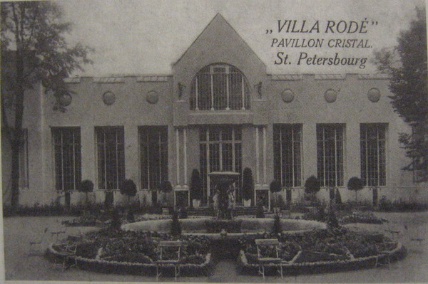 "ВИЛЛА РОДЭ", загородный ресторан. Открыт в 1908 предпринимателем А. С. Родэ на углу Новодеревенской наб. и Строгановской ул. (ныне Приморский просп. и ул. Акад. Крылова) в павильоне "Кристалл", построенном в том же году на месте существовавшего с 1885 ресторана "Помпей".