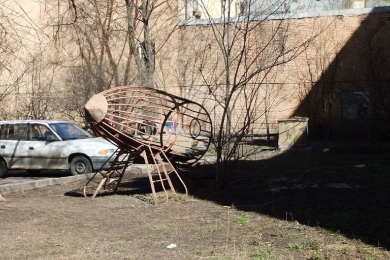 Остатки ещё одной горки-ракеты сохраняются в Колпино на территории д.с. №9 по пр. Ленина,62а: