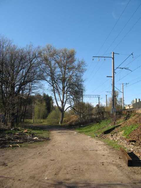 Вчера гулял в тех местах - прямо вдоль ж/д полотна (но уже не сестрорецкой, а зеленогорской ветки) идёт еще одна заброшенная дорога (или даже тропинка). В ТопПлане-2008 называется она "Зеленогорская улица" (возможно, по ошибке) и проходит вдоль полотна, а потом поворачивает на запад, к ул. Матроса Железняка. Быть может, это остатки той дороги, которая снята на старой фотографии?