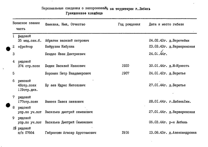 На всякий случай выкладываю и последнюю страницу документа на братскую могилу в Любани.