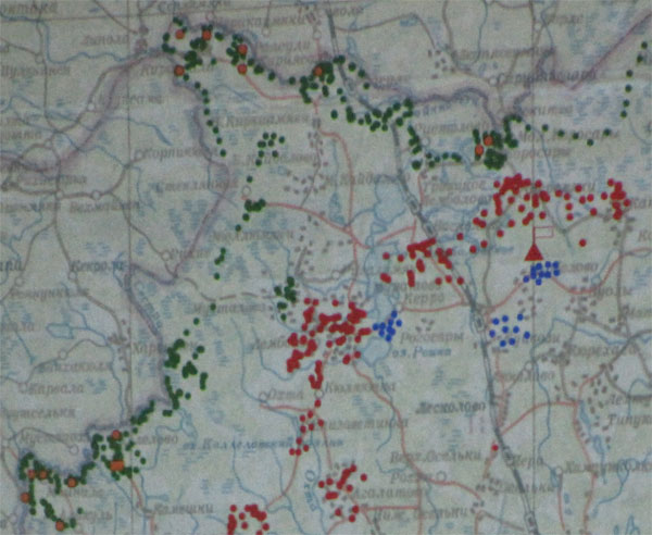 В этих местах (р.Смородинка) передовой рубеж КаУР практически вплотную примыкал к старой границе (Коркиамякский и Оремякский бат р-ны).