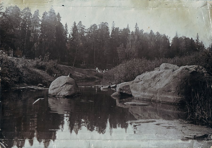 Недавно купил по дешевке в антикварном магазине старую фотографию. Напоминает Оредеж. Но где это? Батово? Сиверская? Вырица? Может быть кто-то сможет узнать это место по характерным камням на переднем плане?