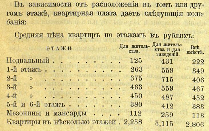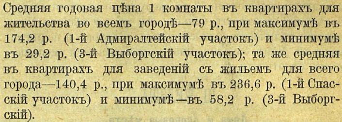 В "Статистическом очерке СПб." (1900г.) указывалась среднегодовая стоимость аренды.