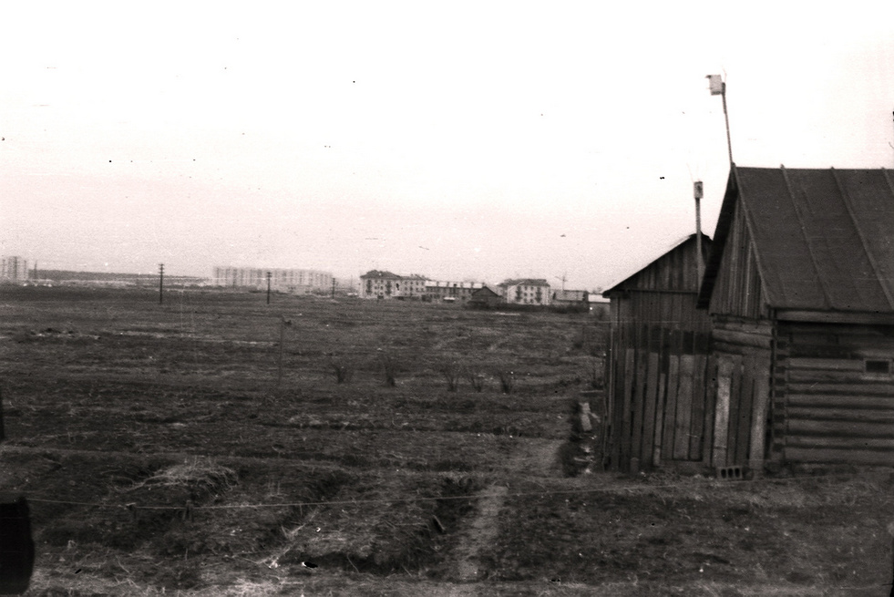 Вот и вид на задние огороды приусадебных участков, "кружочки" - это скорее всего столбы в линию. 1966 год. Автор В. Рогожкин.