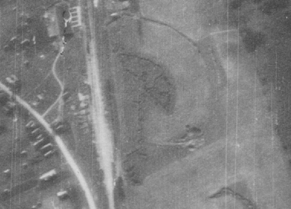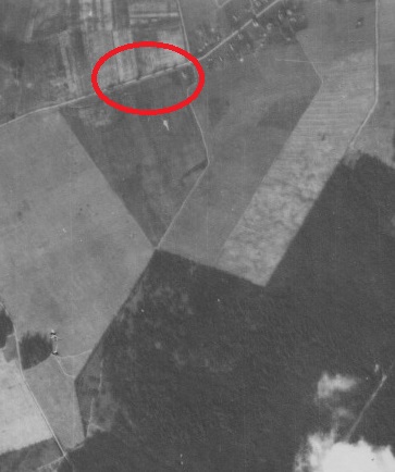 Во-первых, объект в кружочке очень светлый (чуть темнее дороги и примерно как крытые жестью крыши). Во-вторых, он отбрасывает слишком большую тень для танка в окопе и даже для танка вообще (сравните со стожками правее и выше или с объектами на дороге правее и ниже)