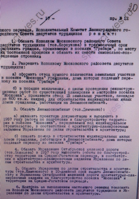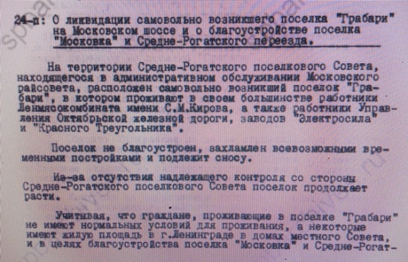 В бюллетене Ленгорисполкома 1953 г. встретилось название пос. Грабарей. Речь о Московском районе Ленинграда. Где это?