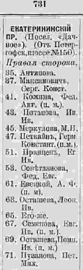 - Улицы обоих посёлков упоминаются в городских справочниках 1918, 1922 и - по инерции - 1923 года, а также в списке улиц Нарвско-Петергофского При этом, правда, есть вопрос по селению Красненькому, которое вроде бы оставалось за Среднерогатской волостью, в состав которой вошла часть бывшей Московской. В документах Нарвско-Петергофского района за 1922 год в частности несколько раз упоминается Новь (т.е. Ульянка).
