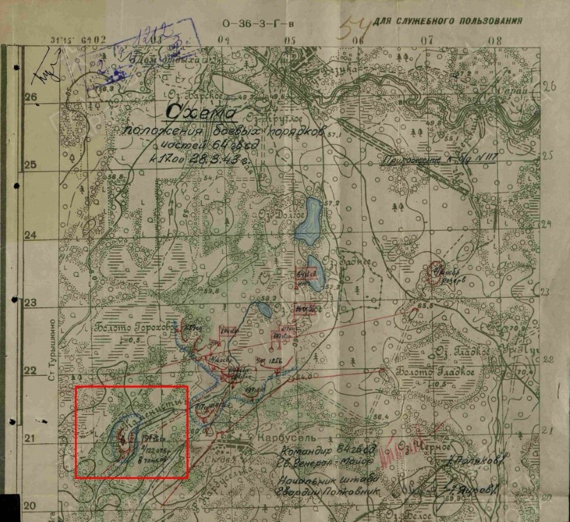 По поводу танков... В своё время прочитал интересную статью Мосунова "Цена километра болот: точка поставлена" на warspote, в ней речь шла о последней попытке прорваться к Турышкино, в тылу немецкого опорного пункта в Карбусели, под занавес наступательной операции в марте 1943, которая не достигла своих целей. К слову сказать, отошли немцы сами с этого района в январе 1944. Очень впечатлился и естественно сам ознакомился с жбд 122 ТБ и другими документами с нашей стороны, и с немецкими оперативными документами 121 пд, а также корпусными. По результатам переводов, привязок, несколько раз выходил в "поле", с прибором. Да Вы правы, остовов танков там не валяется, лет 10-ть назад из того района вытащили КВ-1с в плачевном состоянии-башня отдельно, корыто отдельно(в сети можно найти статью с фотографиями об этой операции). Сейчас он стоит на диораме и легко опознаётся по отсутствующей большей части гусеницы с одной стороны. Танки которые можно восстановить, утаскивали ещё в войну, в послевоенное время танки подрывались вопами, а потом зимой вытаскивались из болота, кусками на металл, также лично находил мелкую стружку от резаков в болоте в этом районе и много деталей от советских танков в виде кусков металла разного размера, все в воде, кое-какие детали даже удалось опознать (Т-34), года четыре назад.