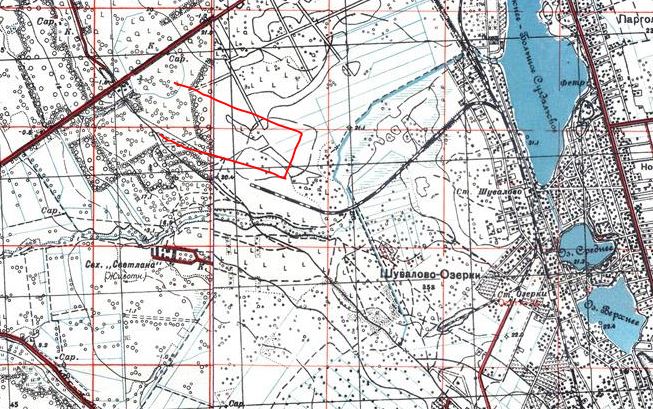 У немцев - Шувалово, а у наших - Каменка, у немцев - Шувалово-Светлана, а у наших - Парголово.