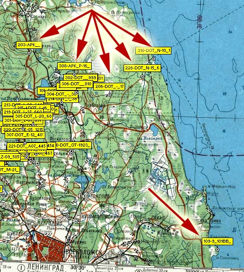 Указаны те, что стоят у дорог и в людных местах. Приводить в порядок лучше начиная с них. №213 расположен в центре будущего (или уже строящегося ?) коттеджного поселка газпрома. Хотелось бы и туда успеть, пока из дотов бассейны не понаделали, как в Агалатово.