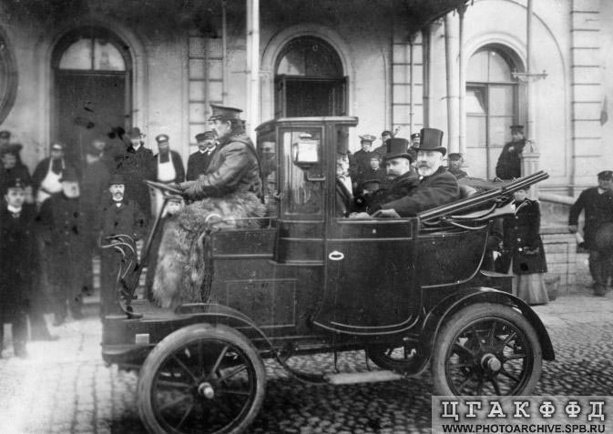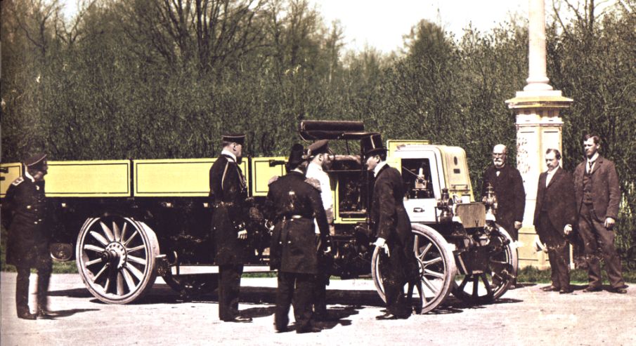 Инженер Луцкий демонстрирует Николаю Второму грузовик своей констукции.