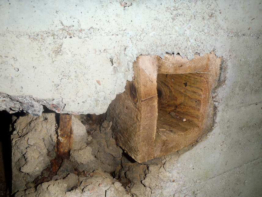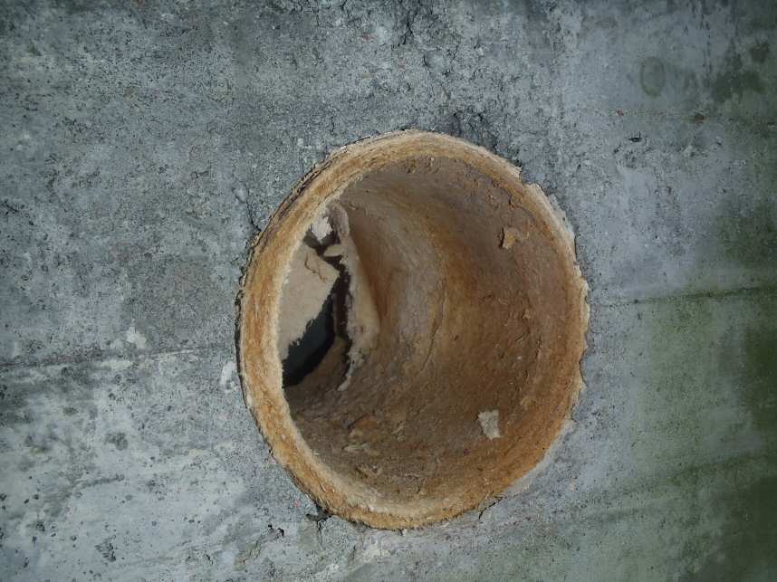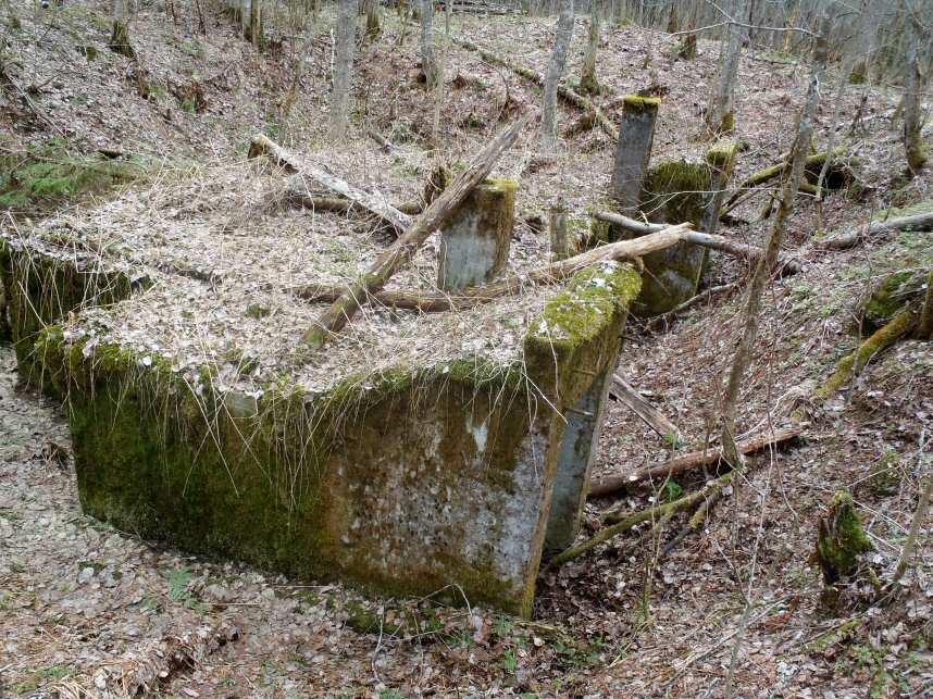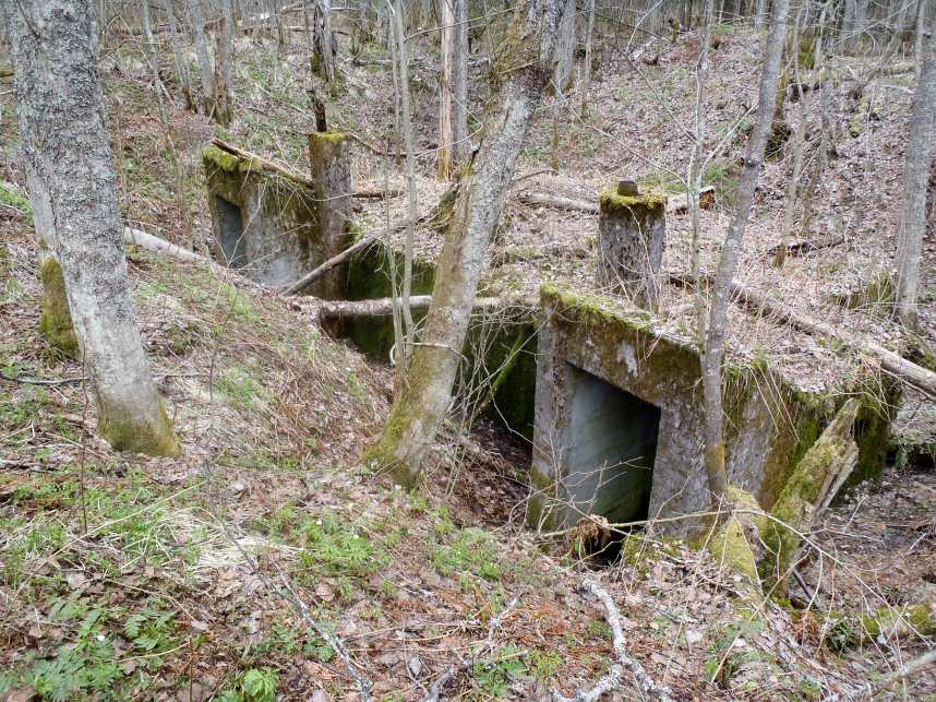 Повидимому, сооружение должно было после созревания бетона быть засыпано, так, что наружу торчали бы только выходы воздуховодов. Непонятно, почему входы упираются в склон котлована.Толи к ним в дальнейшем должны были прорывать траншеи, толи еще как, но почему не сразу вырыть?