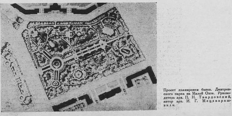 Уважаемый giper выложил в свой ЖЖ скан журнала "Архитектура Ленинграда" 4-1939,посвященного генплану Ленинграда того года . Что меня там поразило - это упоминание бывшего Дмитровского парка ,подлежащего реконструкции уже в 1939 г. Судя по приложенному плану -это будущий Малоохтинский парк между Республиканской и Перевозным . Оказывается бывший Дмитровский парк должен был стать ни много не мало ,а районным парком культуры и отдыха . Странно,что ни на одном плане тех лет этого Дмитровского сада ,который уже подлежал реконструкции ,нет даже как зеленого пятна . Ну и откуда вообще возникло такое название - Дмитровский?