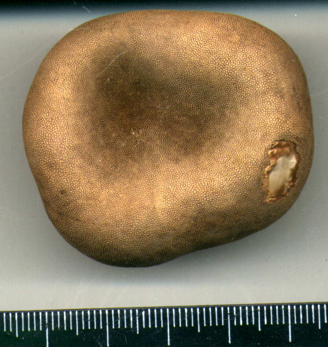 Найден в густом еловом лесу в земле на глубине 5 см. Внутри желтого цвета, запах и горечь отсуствуют, по вкусу напоминает орех или топинамбур. Корни и наросты отсутствуют. Встечал такие штуки неоднократно, но меньшего размера.