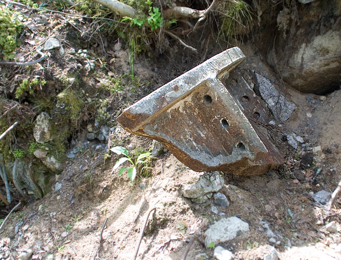В сторону фронта расположена орудийная позиция, в тылу - подорванное убежище, возможно с бронеколпаком и котлован под убежище с полукруглым сводом.