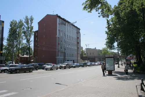 Года два назад у меня на работе лежала бумажка, что с какого-то дома на Сердобольской сняли фрески (с Лениным, что ли). А на днях я дошел до того места. Я так понимаю, что на брандмауэре вот этого дома была эта фреска?