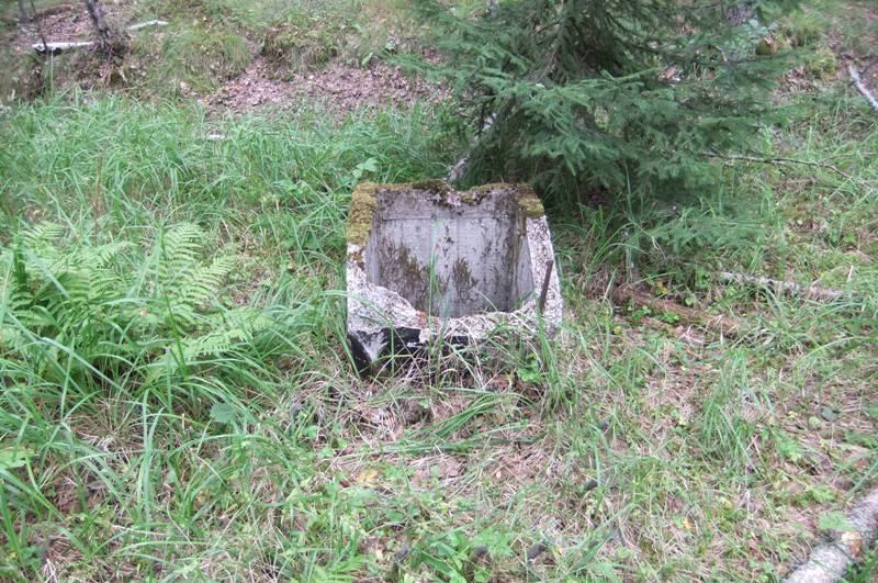 Недалеко от ДОТа укрепузла Муолаа Mu16 - по другую сторону дороги на Вещево - увидел развалины объекта неясного назначения. Собственно, даже развалинами это не назовёшь: бетонное основание размером ~ 6x9 м, из которого по всей площади торчат остатки (в основном -обрезки) арматуры. И прямоугольный колодец, на глубине около 1,5 м залитый водой. На остатки ДОТа явно не похоже, да и не должно быть там ДОТа, если не ошибаюсь.