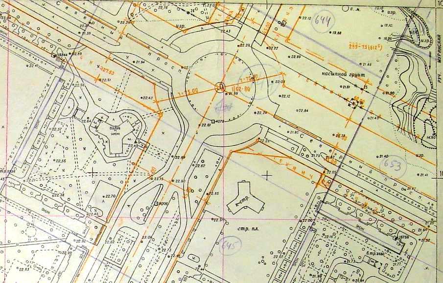 Согласен с предположением Бегемота по поводу венткамеры метро. Копали глубоко. (на прилагаемом плане Треста ГРИИ (ситуация на июль 1978 г.) она видна около синей цифры 644 на северной рамке листа (кружок с пояс.надписью "в.м.").