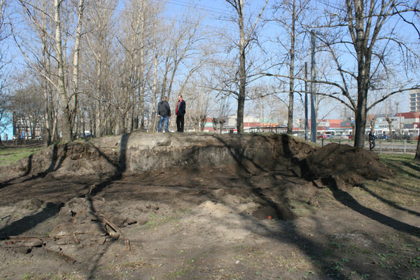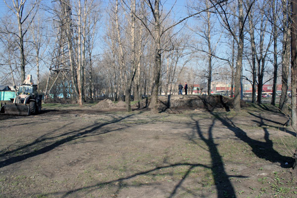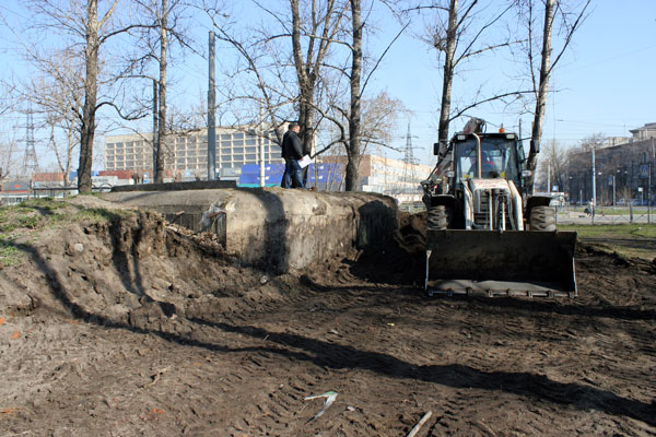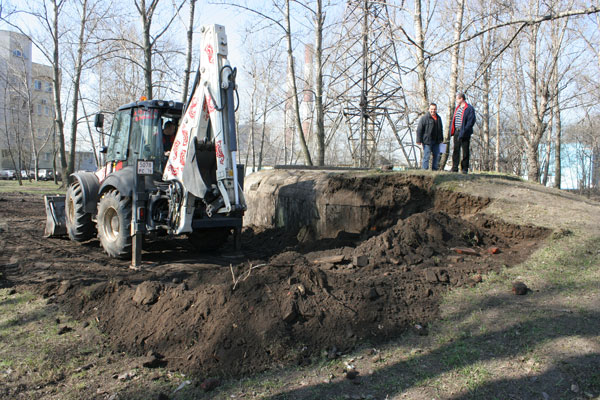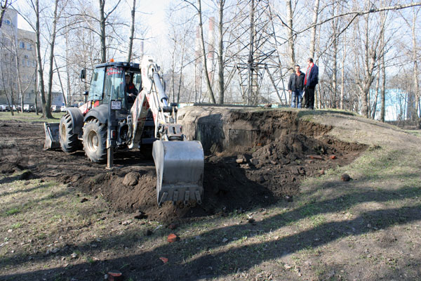 Работы начались. Под верхним слоем земли куча битого кирпича и металлолома...