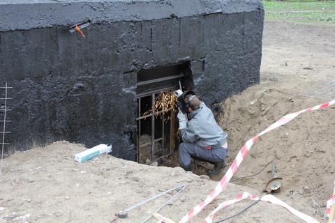 Вчера был "завершающий аккорд". Нанесли надпись и приварили "анти-бомжовые" решетки на амбразуру и дверь.