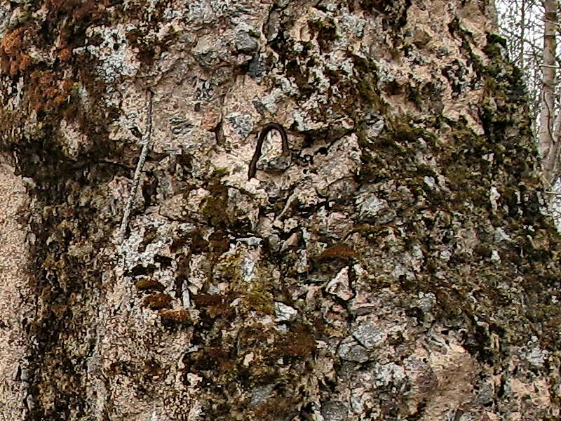 Видимых обломков бетона рядом (метров 20-30 посмотрела) нет. Если только полностью засыпано землей. Земляной холм спереди и с боков от плиты выше, чем за ней. Может быть она лежала, а потом ее поставили вертикально.