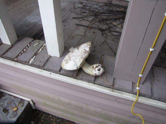 У меня участок очень "грибной" - приехав на выходные можно в сезон набрать корзину не выходя за забор. Каждый год практически в одном месте вырастает один гриб, по всем признакам "красный", но "БЕЛЫЙ"!!!-))))(альбинос???)