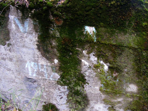 Надпись была уже не новой в 2007 году (см. ту же ветку на фортификейшн). На одной из горизонтальных поверхностей сверху была надпись белой краской, о том что ДОТ штурмовали части такой-то дивизии (написанный номер - не помню). Сейчас горизонтали затянуто мхом.