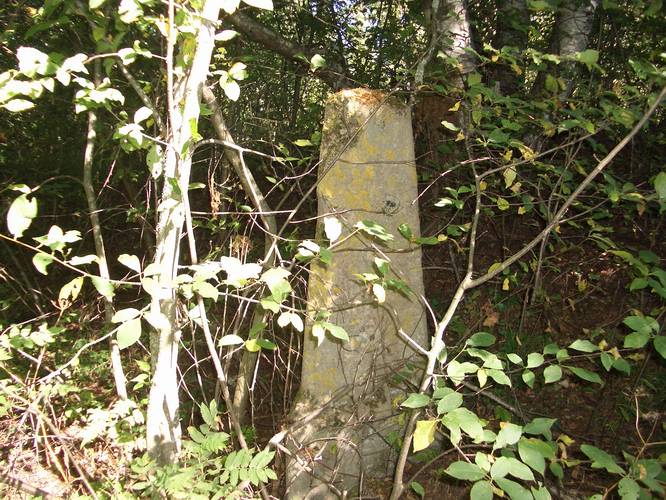 А вот такой столбик - это что? Найден (не мной) в лесу у Староладожского канала между Кобоной и Черным.